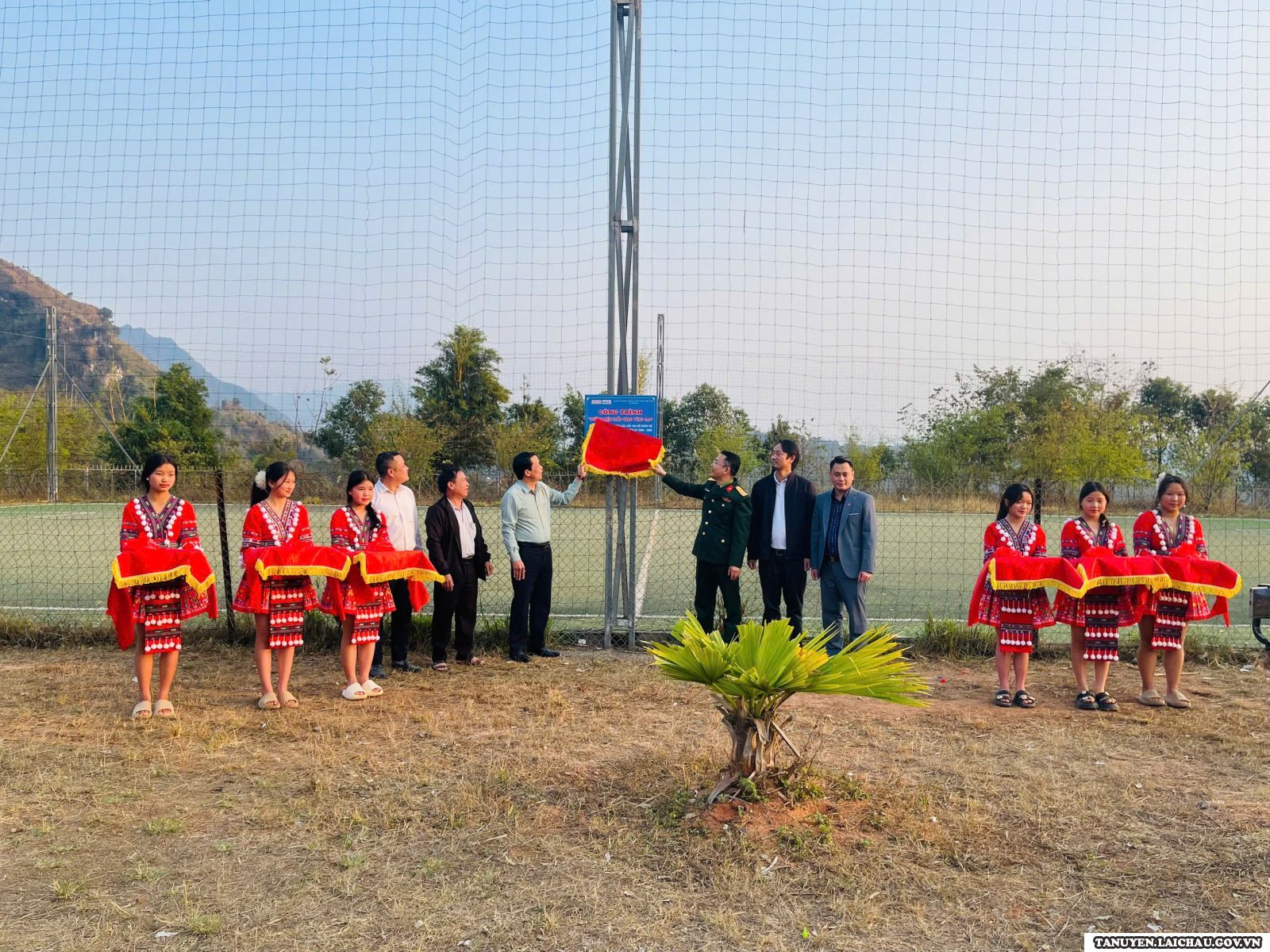 Ảnh: Lãnh đạo UBND huyện, Chi nhánh Công trình Viettel Lai Châu và Công ty TNHH Suntek Việt Nam, UBND xã Hố Mít đã cắt băng khánh thành công trình