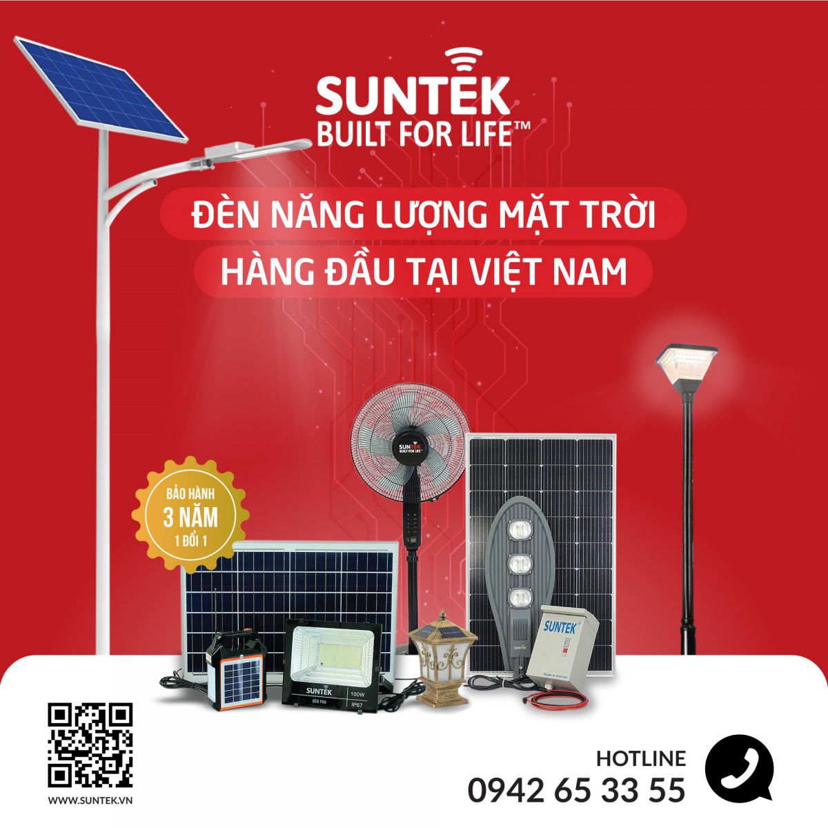 Suntek Việt Nam là đơn vị chuyên sản xuất và cung cấp các thiết bị đèn mặt trời chính hãng, giá tốt, chất lượng cao, là sự lựa chọn đáng tin cậy cho giải pháp chiếu sáng năng lượng mặt trời của bạn. Các sản phẩm của Suntek đều được sản xuất trên dây chuyền công nghệ hiện đại, đảm bảo các tiêu chuẩn khắt khe, đạt chứng nhận ISO 9001, không chỉ mang đến hiệu quả chiếu sáng tối ưu, mà còn đảm bảo các tiêu chí an toàn cao nhất cho người dùng.