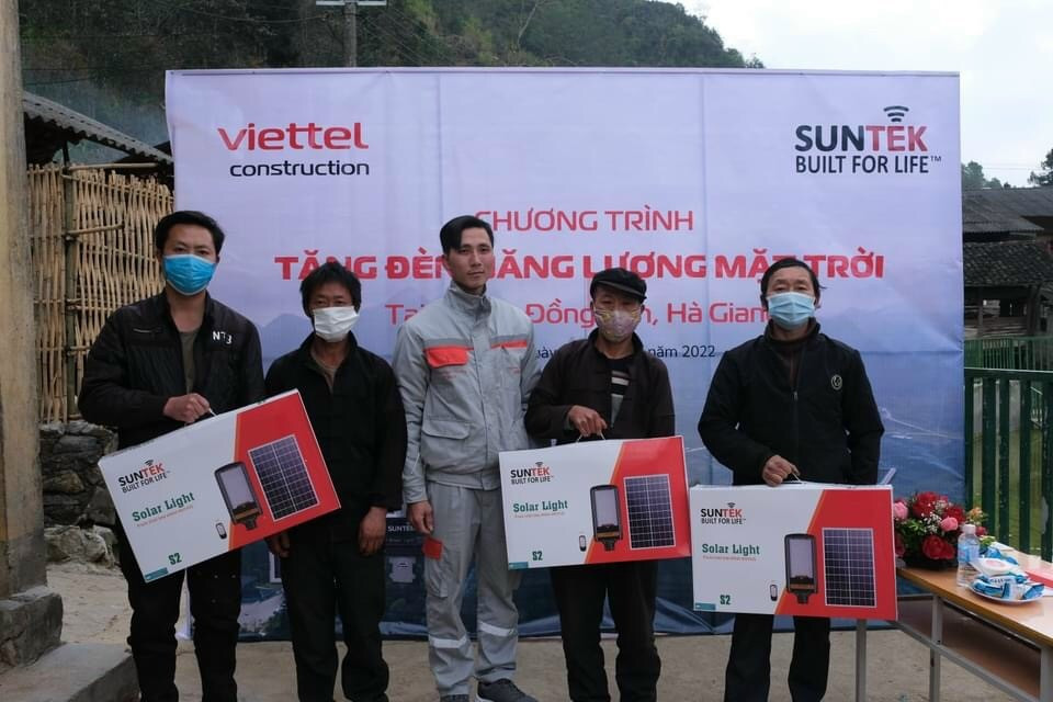 Trong chương trình lần này, nhà đồng hành Suntek và Global Solar đã tặng 80 chiếc đèn năng lượng mặt trời để trao tận tay điểm trường và nhiều hộ dân. Sản phẩm này có được thiết kế nhẹ, nhỏ, gọn, đính kèm một miếng pin năng lượng mặt trời, làm bằng chất liệu không bám bẩn, không thấm nước, tuổi thọ cao tới 50.000 giờ và có thời gian chiếu sáng liên tục từ 28 giờ đến 30 giờ. Đây cũng là sản phẩm chủ đạo do Viettel Construction đã phối hợp các nhãn hàng phân phối, lắp đặt tại 63 tỉnh, thành phố trên cả nước.