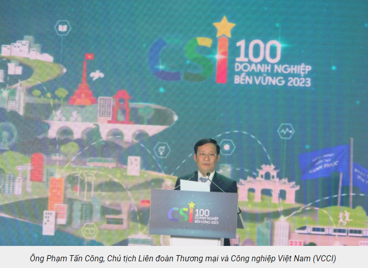 Phát biểu khai mạc Lễ công bố, ông Phạm Tấn Công, Chủ tịch VCCI, Trưởng ban chỉ đạo Chương trình CSI 2023 nhận định, sự ổn định và tăng trưởng bền vững trong hoạt động sản xuất kinh doanh của những doanh nghiệp được vinh danh trong Lễ công bố CSI 2023 là minh chứng cho sự chọn lựa đúng đắn khi họ đã dấn thân, tiên phong áp dụng các tiêu chí bền vững trên cả 3 phương diện môi trường, xã hội, quản trị (ESG) cho chiến lược kinh doanh dài hạn của doanh nghiệp.