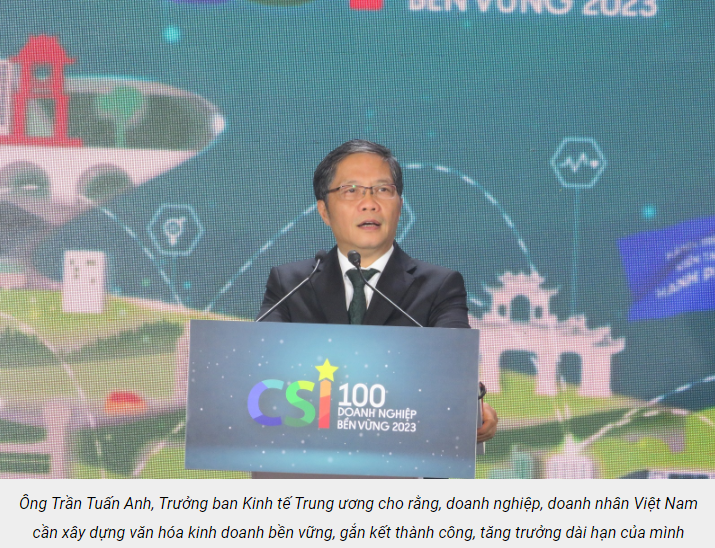 Theo Trưởng ban Kinh tế Trung ương, Nghị quyết số 41-NQ/TW về xây dựng và phát huy vai trò của đội ngũ doanh nhân Việt Nam trong thời kỳ mới được Bộ Chính trị ban hành vào tháng 10 vừa qua đã nhấn mạnh, quan tâm hơn đến các tiêu chí đánh giá sự lớn mạnh về chất lượng của đội ngũ doanh nhân có tầm nhìn, trí tuệ, đạo đức, tinh thần kinh doanh, làm giàu chính đáng, năng động, sáng tạo, năng lực quản trị tiên tiến, tuân thủ pháp luật, có đạo đức, văn hoá kinh doanh mang bản sắc dân tộc; có trách nhiệm xã hội, ý thức bảo vệ môi trường. Đây chính là các tiêu chí thể hiện sự phát triển bền vững của doanh nghiệp, được cụ thể hóa trong Bộ chỉ số CSI.