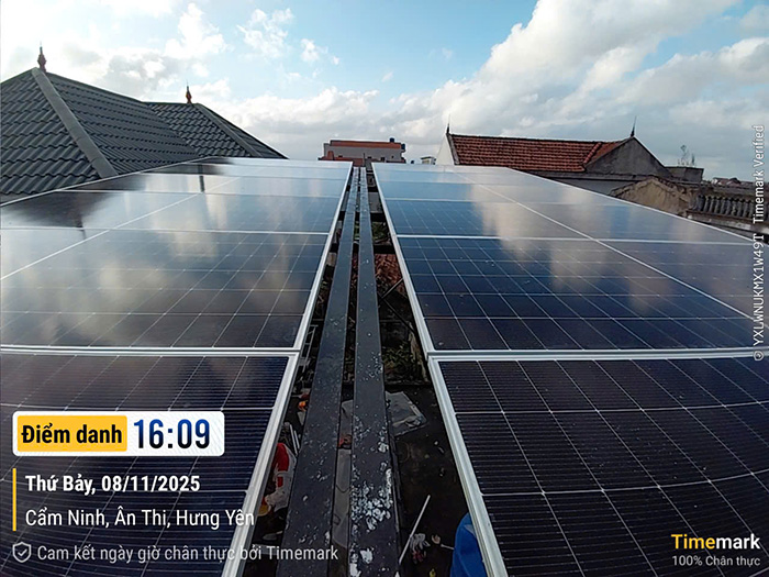 Thời gian hoàn thiện một hệ thống lắp đặt điện mặt trời áp mái thường dao động từ 2–3 ngày đối với hộ gia đình và 5-7 ngày đối với nhà xưởng, tùy theo quy mô.