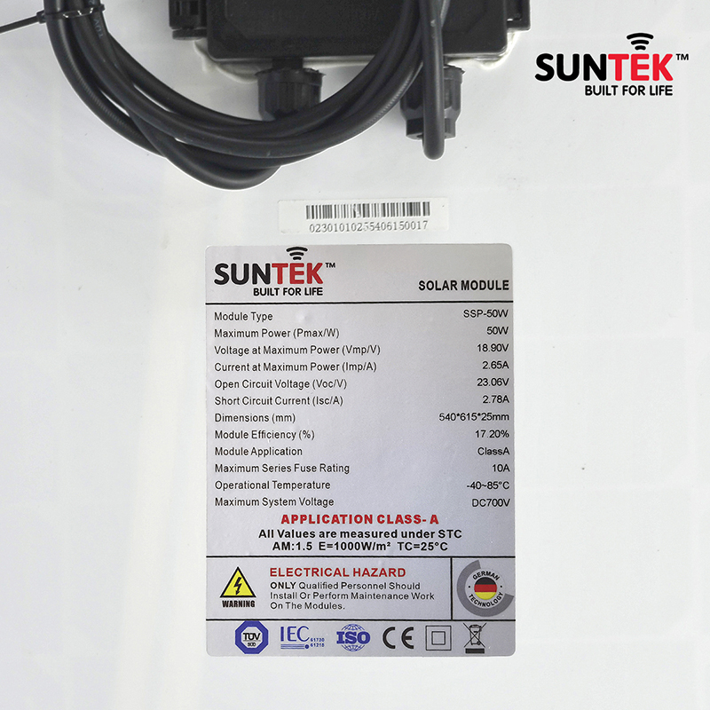 1 x Tấm Pin Năng Lượng Mặt Trời SUNTEK SSP-50W (dây tích hợp dài 85cm).