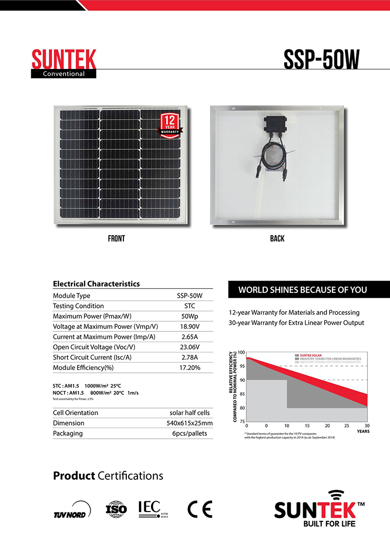Tấm PIN Năng Lượng Mặt Trời SUNTEK SSP-50W