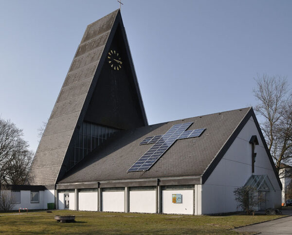 Những tấm pin năng lượng mặt trời hình thánh giá trên mái một nhà thờ tại Đức.