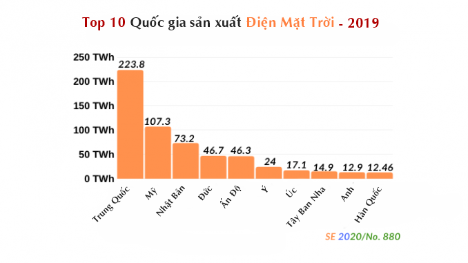 TOP 10 quốc gia sản xuất điện mặt trời năm 2019